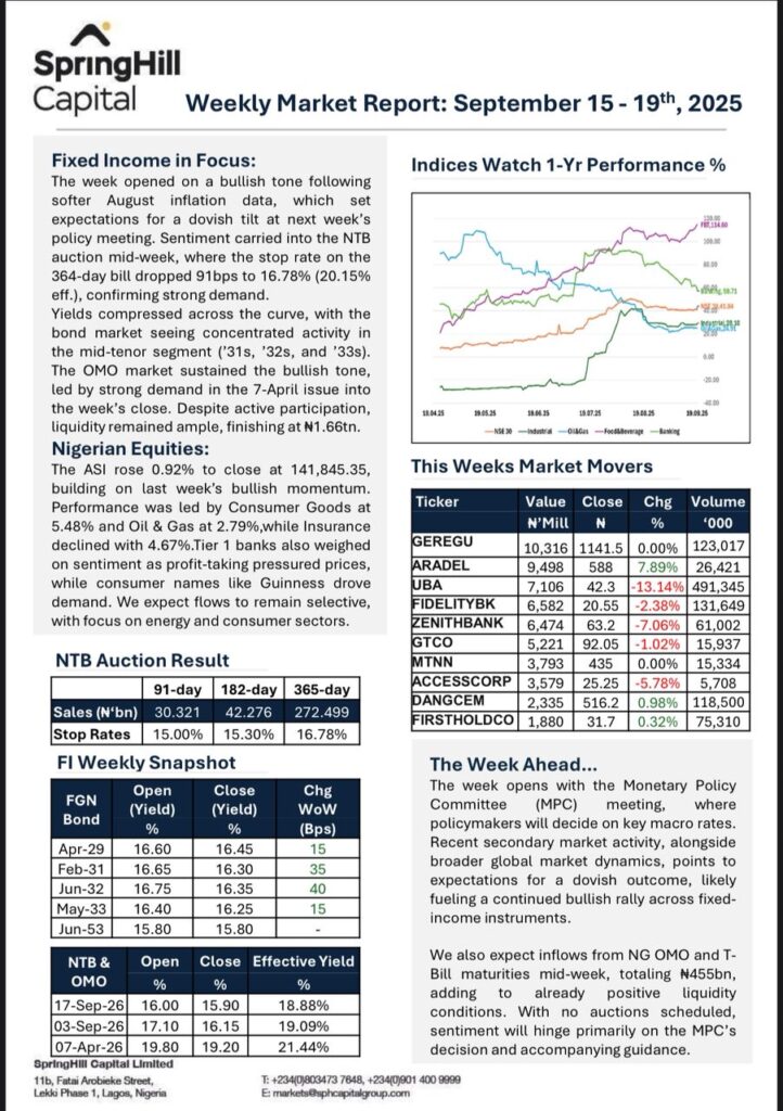 Fixed Income in Focus: The week opened with c.₦3.8tn in system surplus liquidity. In the NTB market, demand was skewed to the long end, with October and November bills trading below 15.50%. In the bond market, activity was broad-based, with bullish interest in the mid-tenor 33s, 32s, and 31s, which printed around c.15.20–15.50% from early […]